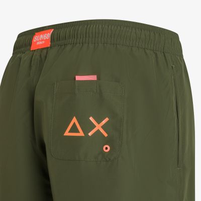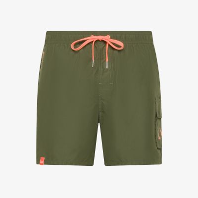 Military green nylon swim shorts
