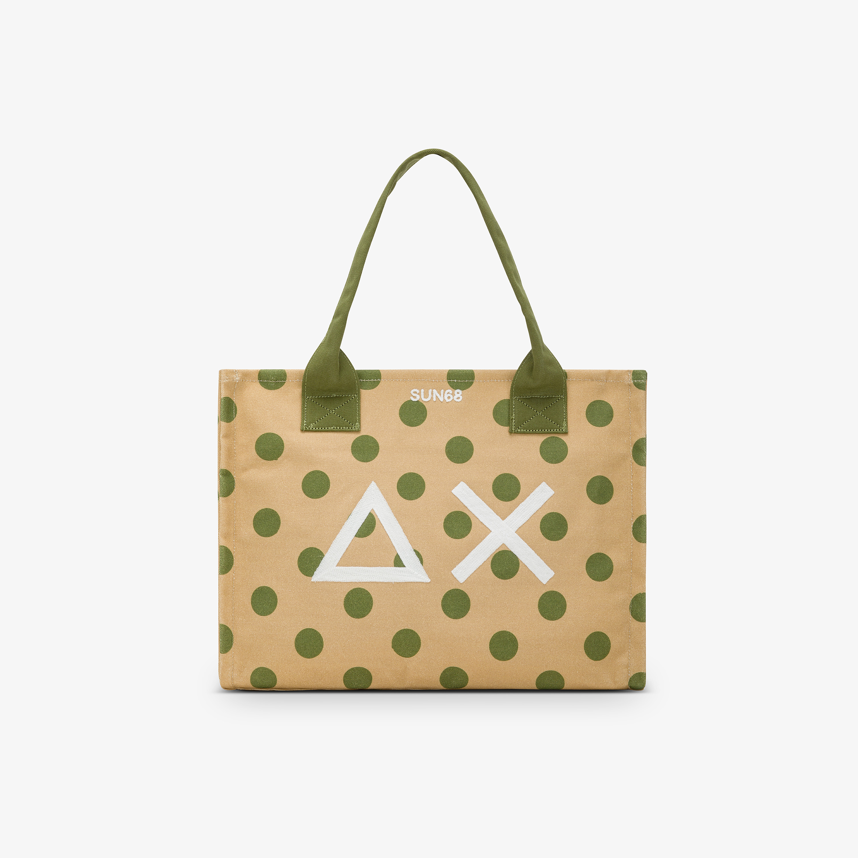 Beige and dark green polka-dot cotton canvas beach bag