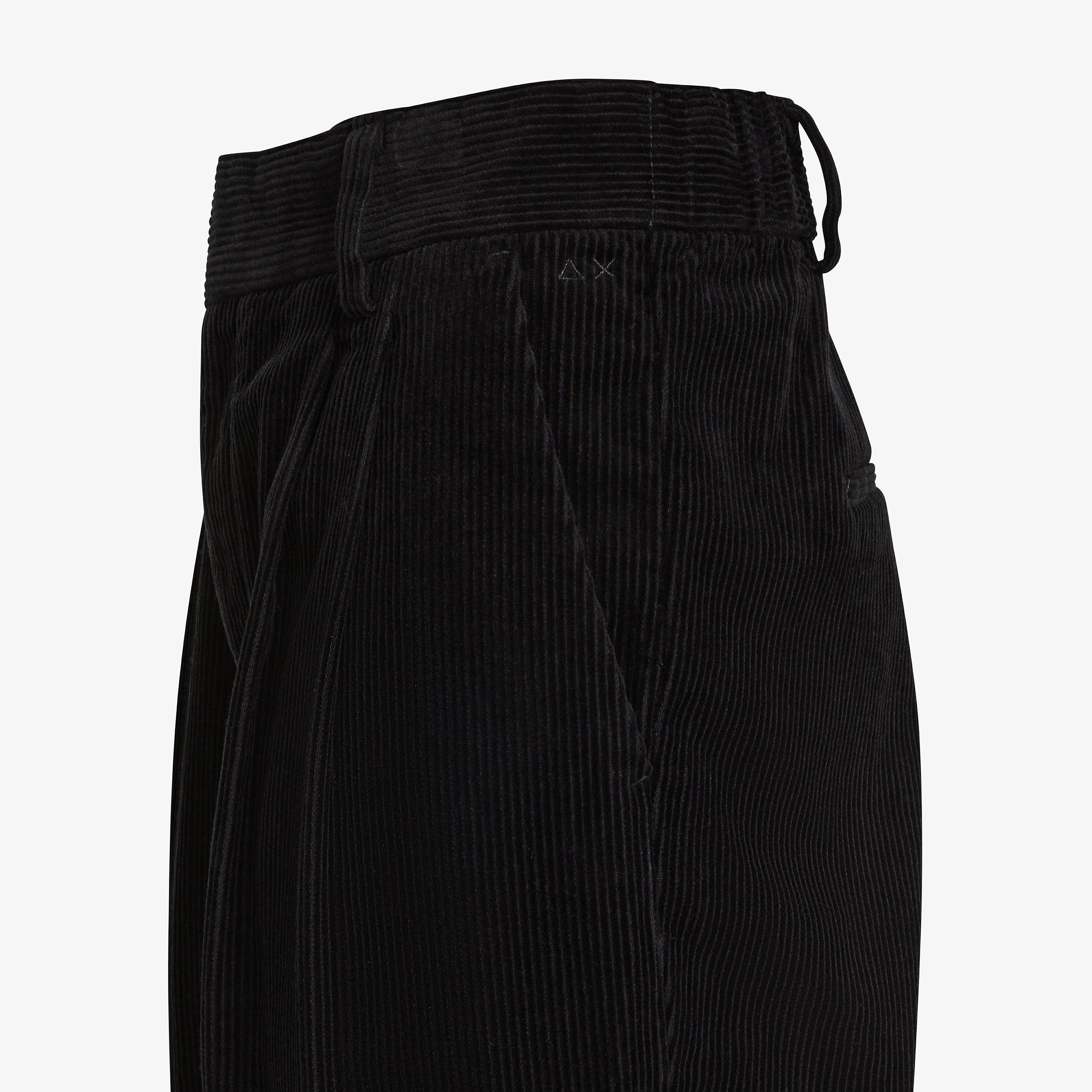 Black corduroy trousers with pleats