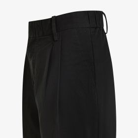 Black stretch cotton trousers with pleats