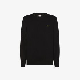 Black wool blend crew-neck jumper