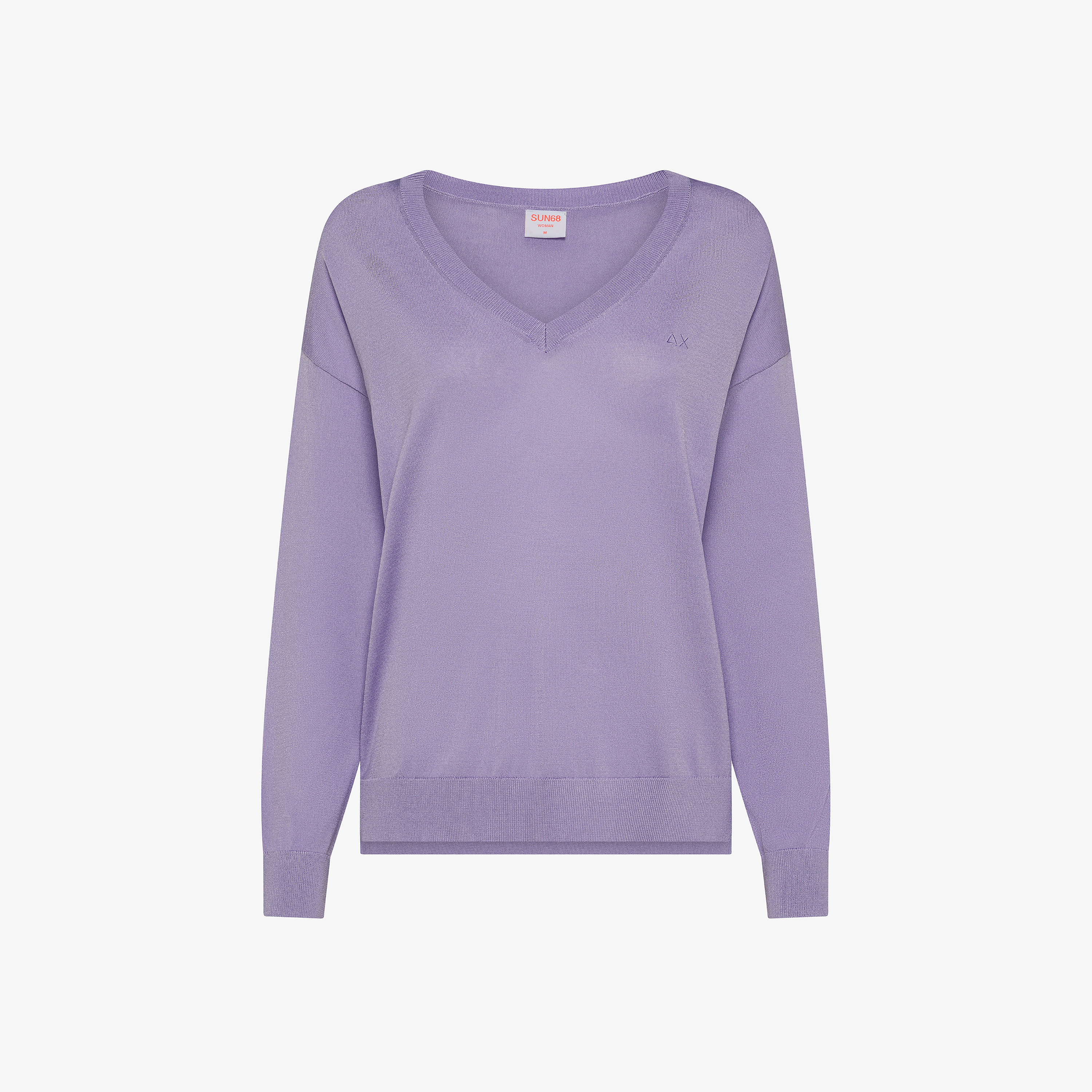 Cyclamen V-neck jumper with embroidered logo