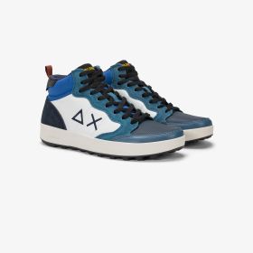 Dark avio Genius Mid nylon and suede sneaker