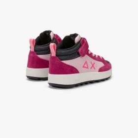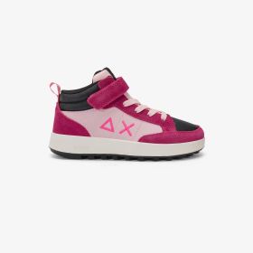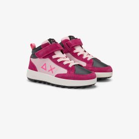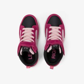 Dark fuxia Kid Girl's Penny Mid strap and lace-up closure high-top sneaker