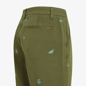 Dark green cotton chino shorts with embroidery