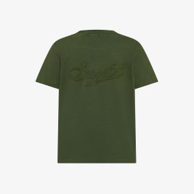 Dark green cotton T-shirt with contrast embroidery