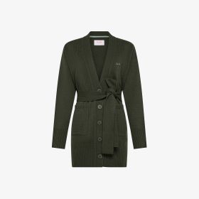 Dark military wool and cashmere cardigan with belt