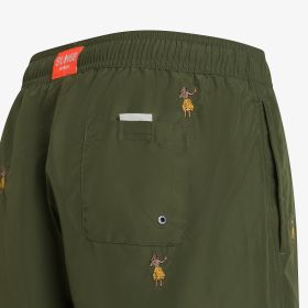 Military green striped beach shorts with embroidery