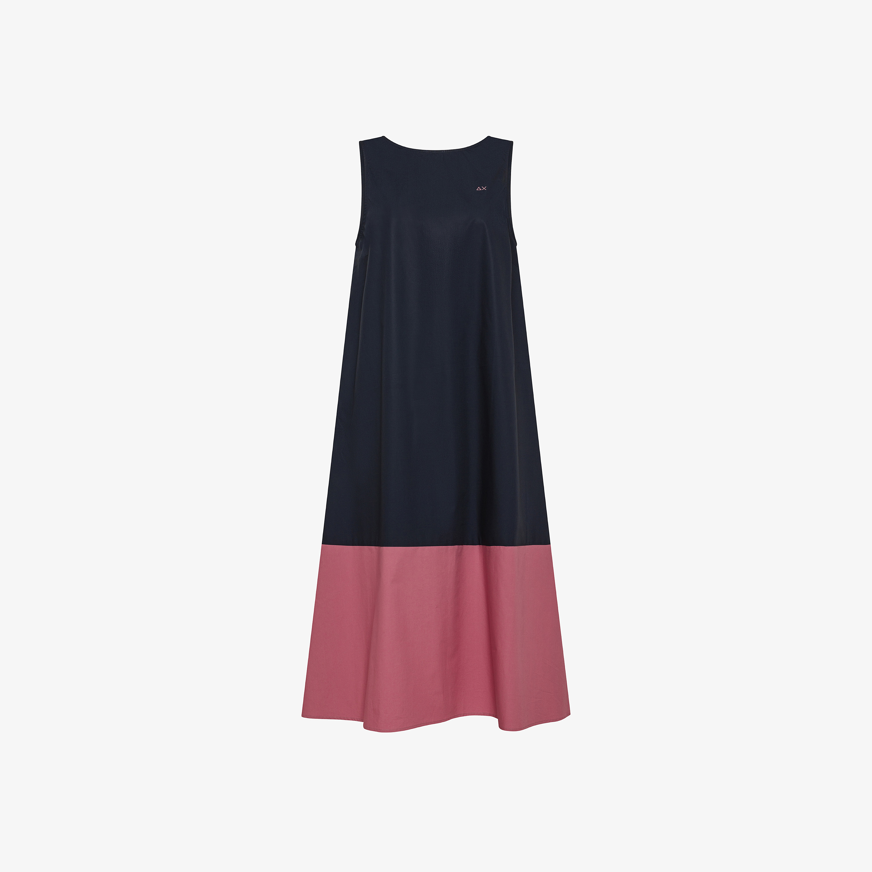 Navy blue and dark pink colour-block cotton dress
