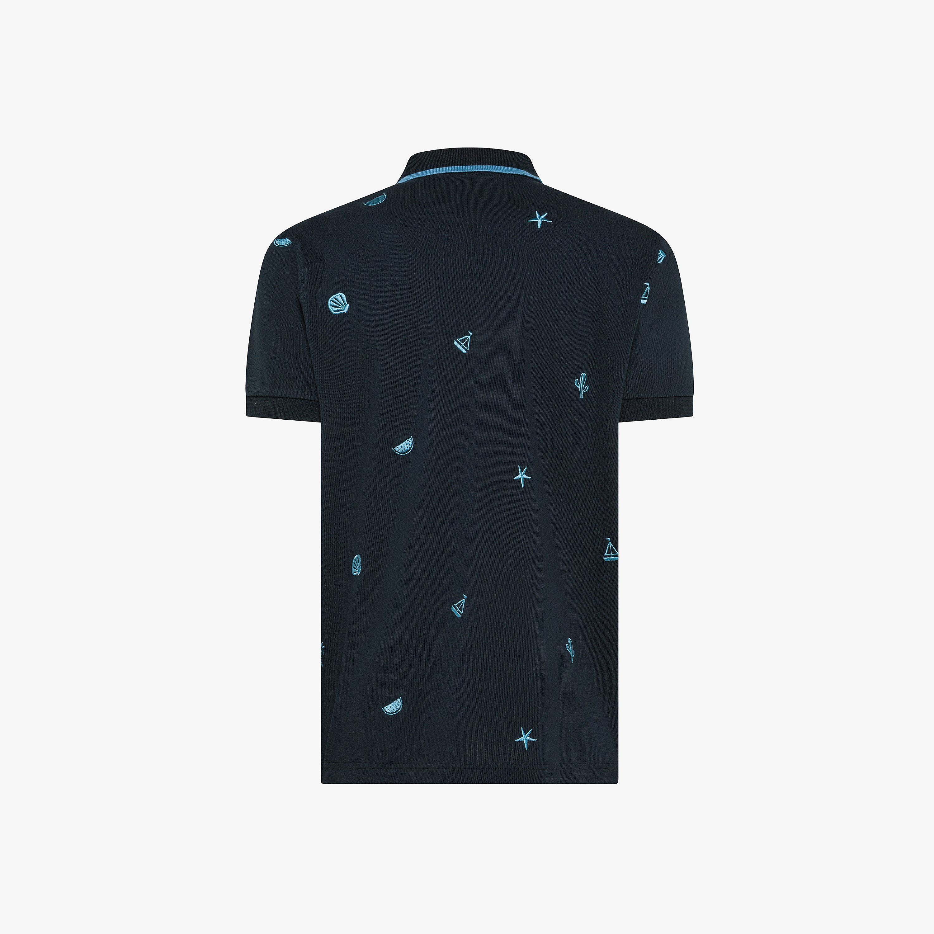 Navy blue cotton piqué polo shirt with embroidery