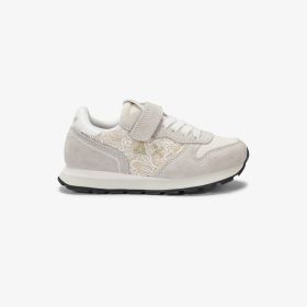Cosy in shape with a precious feel, the Ally Flower sneaker for girls features delicate floral embroidery on the sides. The lace-up front and strap closure ensure maximum comfort. Pair it with a linen T-shirt for a feminine look that captures the season with elegance.