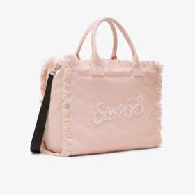 Cali is SUN68’s shopping bag, designed to take you from city life to travel days. Made from canvas, this model features frayed edges for an understated, elegant look. The spacious interior and sturdy handles make it versatile for any occasion. Pair it with a shirt dress and straw hat for a refined summer look, ideal for relaxing by the seaside.