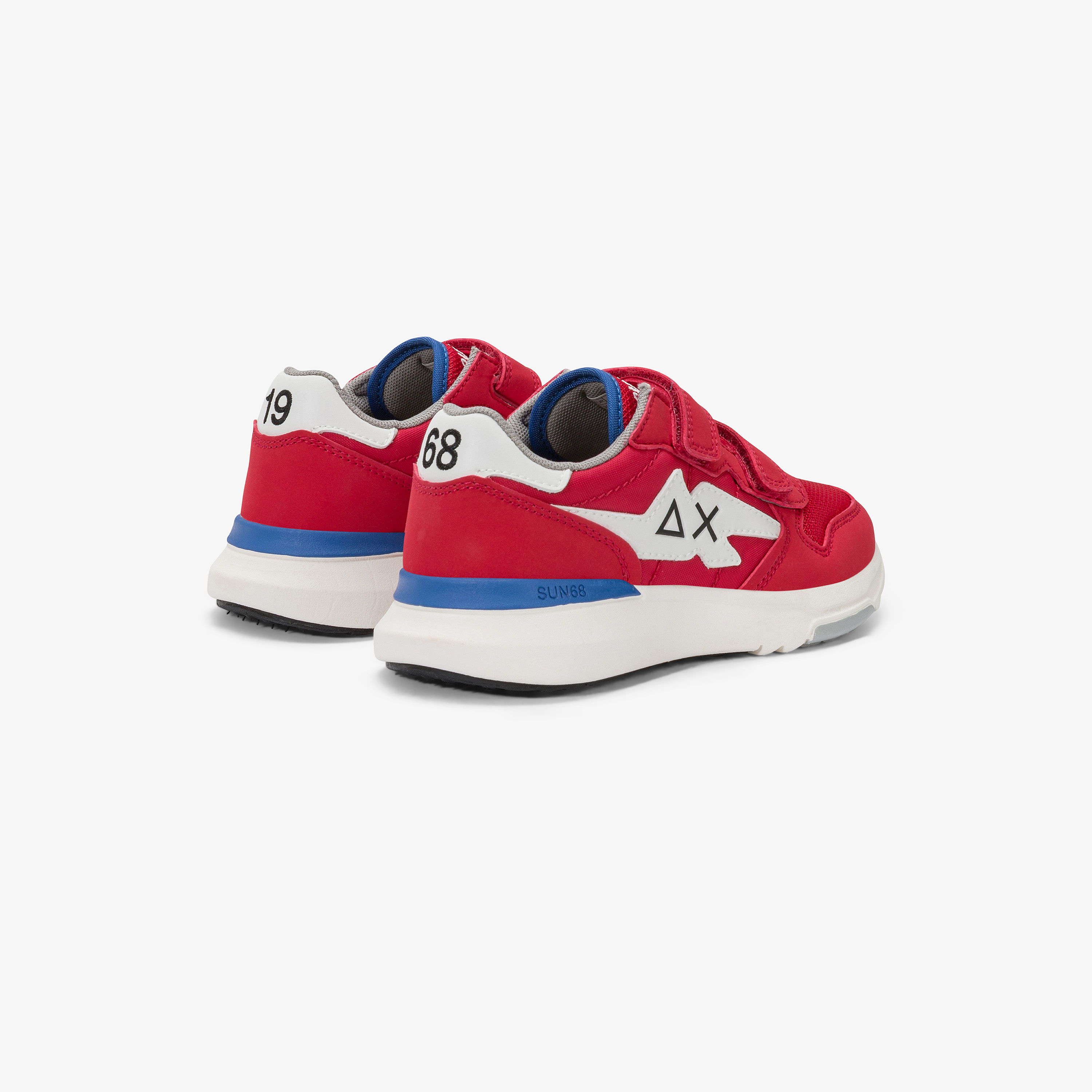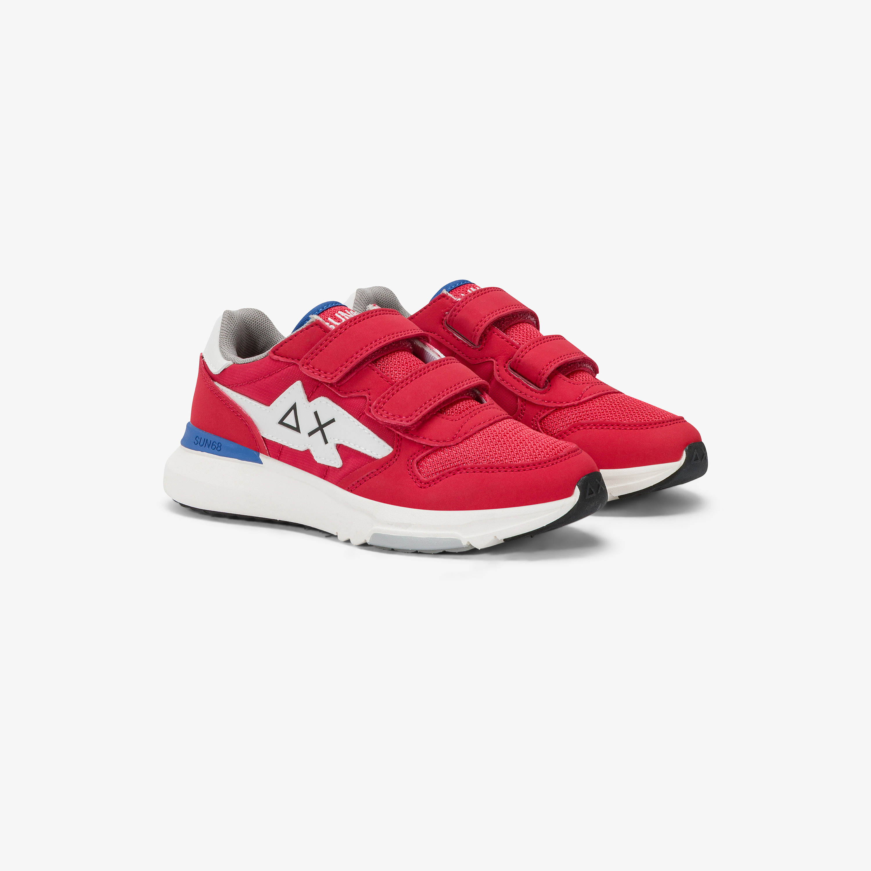 Innovative, lightweight and flexible, Niki is the SUN68 sneaker with a lightning-bolt patch that gives the logo a modern twist. It combines lace-up fastening with a strap closure, making it ideal for school and outdoor adventures. Its dynamic, playful attitude pairs with sweatpants for a laid-back look, or with cargo trousers for an effortless urban edge.