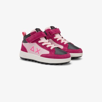 Dark fuxia Teen Girl's Penny Mid faux leather and suede high-top sneaker