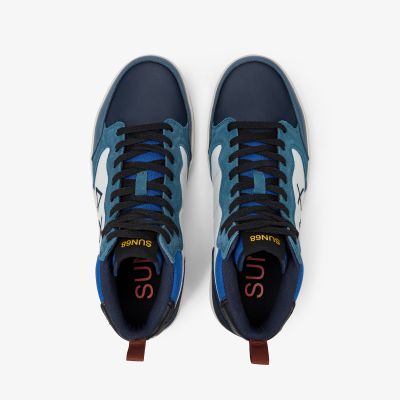 Dark avio Genius Mid nylon and suede sneaker