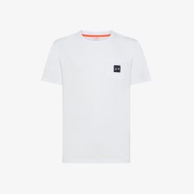 White cotton t-shirt with pocket and logo