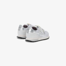 Stargirl Silver is the sneaker that turns a metallic sheen into a pure style detail for girls. Its lightweight construction moves naturally with them, while the strap closure ensures maximum versatility. Pair it with a minimalist top for a bright finishing touch to the look.