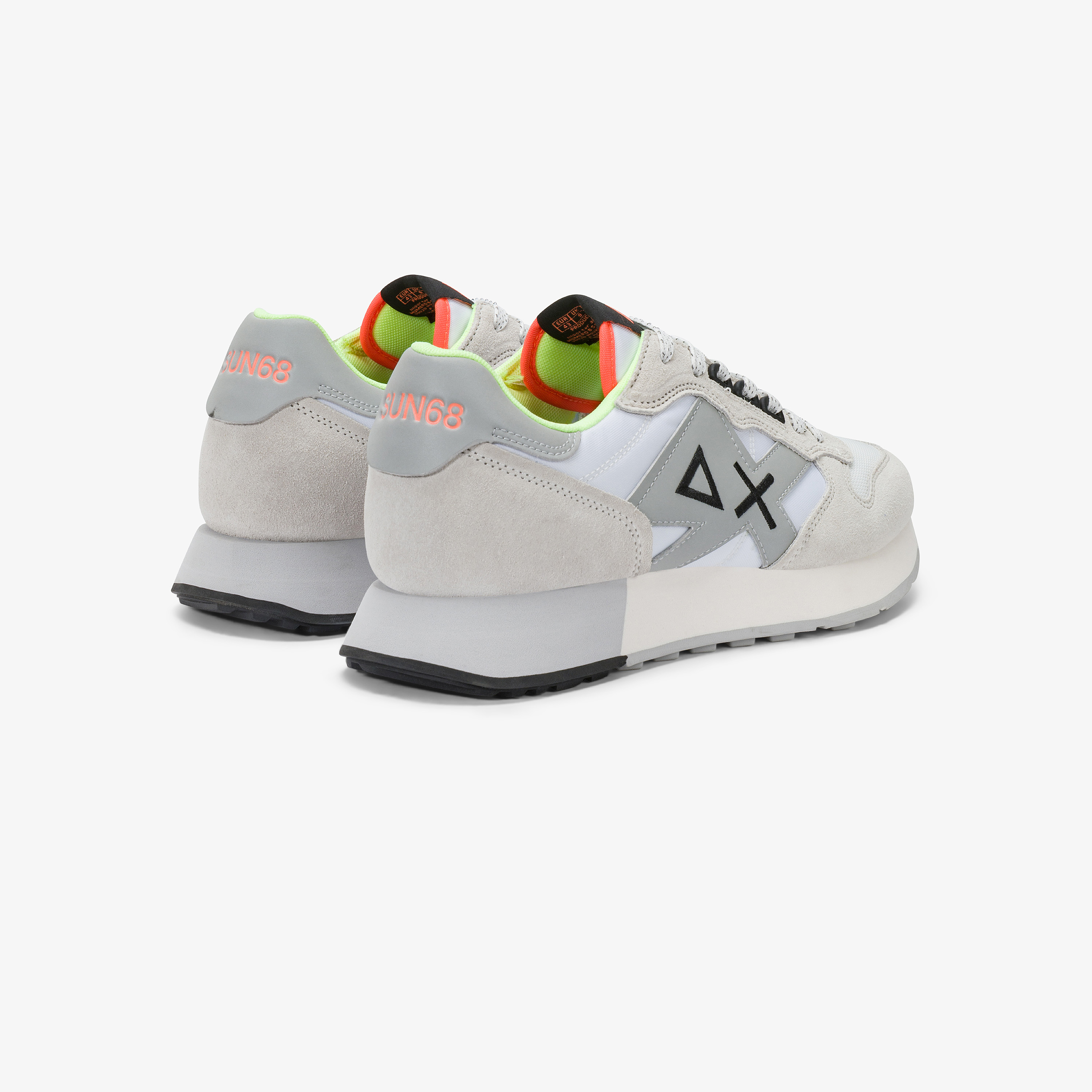 The Jaki 2.0 Fluo sneaker blends quality, sporty comfort and iconic graphic details that add character to your look. It features a running-inspired design defined by neon inserts and a reflective side patch. A distinctive pop of colour that pairs effortlessly with Bermuda shorts and sweaters from the new collection, perfect for travel and weekend adventures.