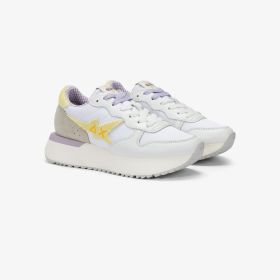 White/lemon yellow Big Stargirl Sponge leather and nylon sneaker