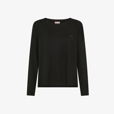 Black cotton jersey boat neckline T-shirt