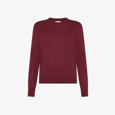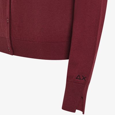 Cardigan girocollo in lana e cotone bordeaux
