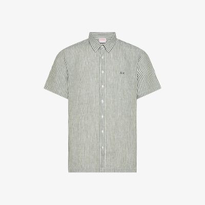 Camicia in lino a righe verde scuro/bianco