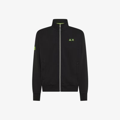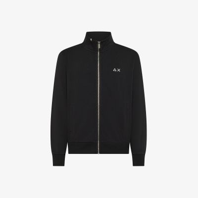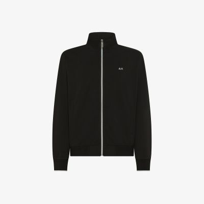 Felpa in piquet di cotone con zip nero