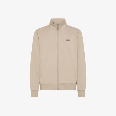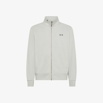 Felpa in piquet di cotone con zip grigio stone