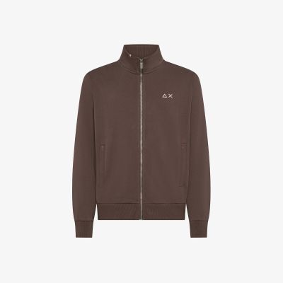 Felpa in cotone con zip marrone