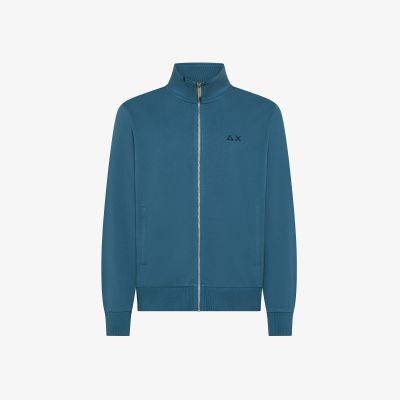 Felpa in piquet di cotone con zip blu navy