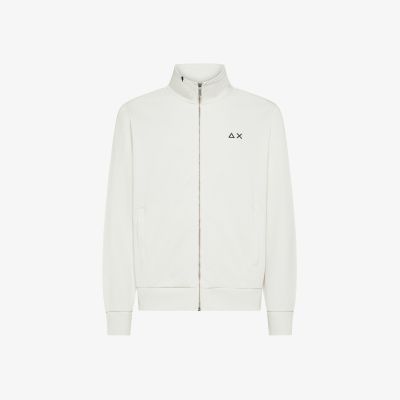Felpa in cotone con zip bianco panna