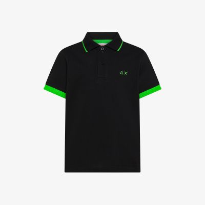 Polo con bordi fluo in cotone nero