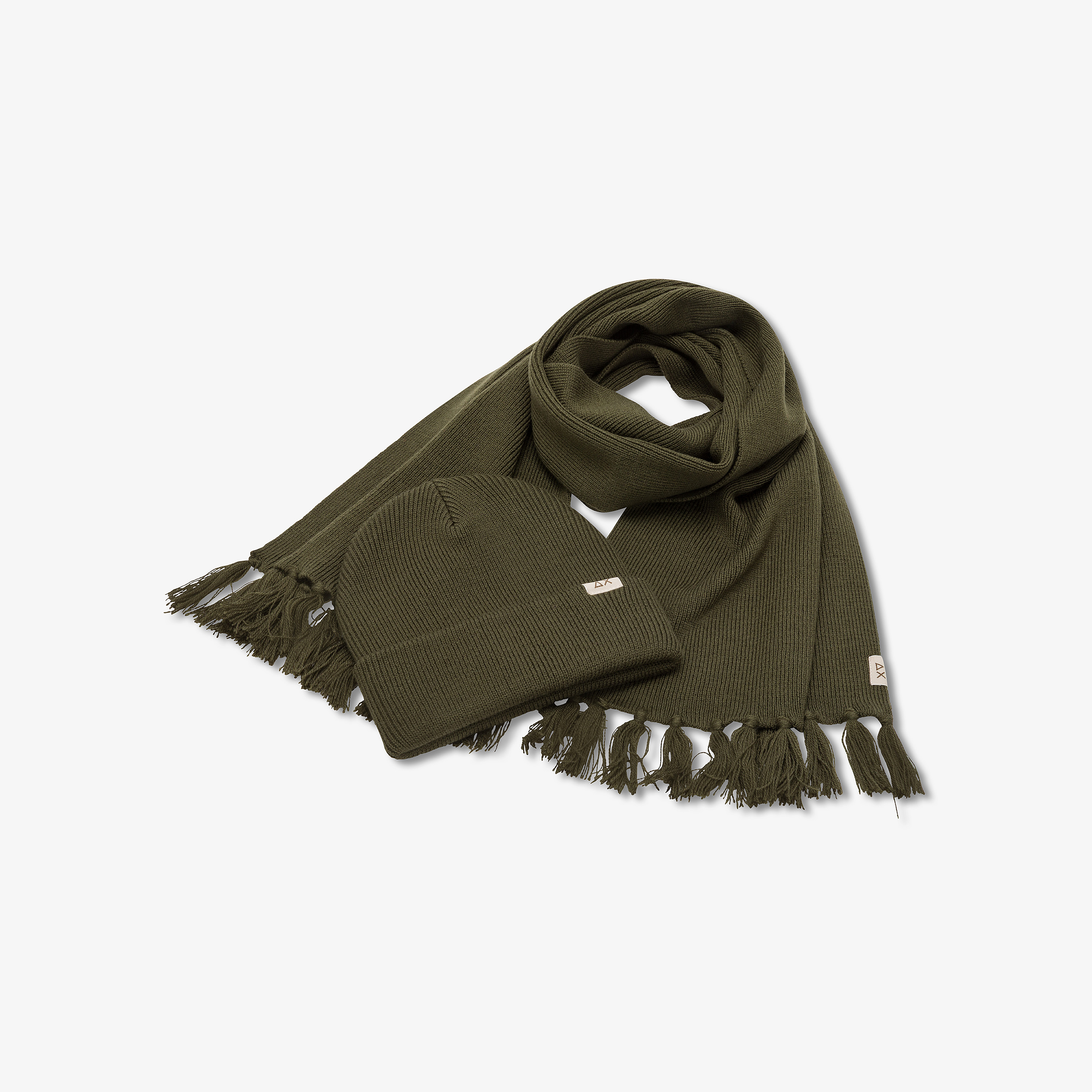 Berretto beanie e sciarpa coordinati militare scuro