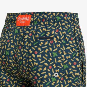 Shorts mare in nylon stampato blu navy/giallo
