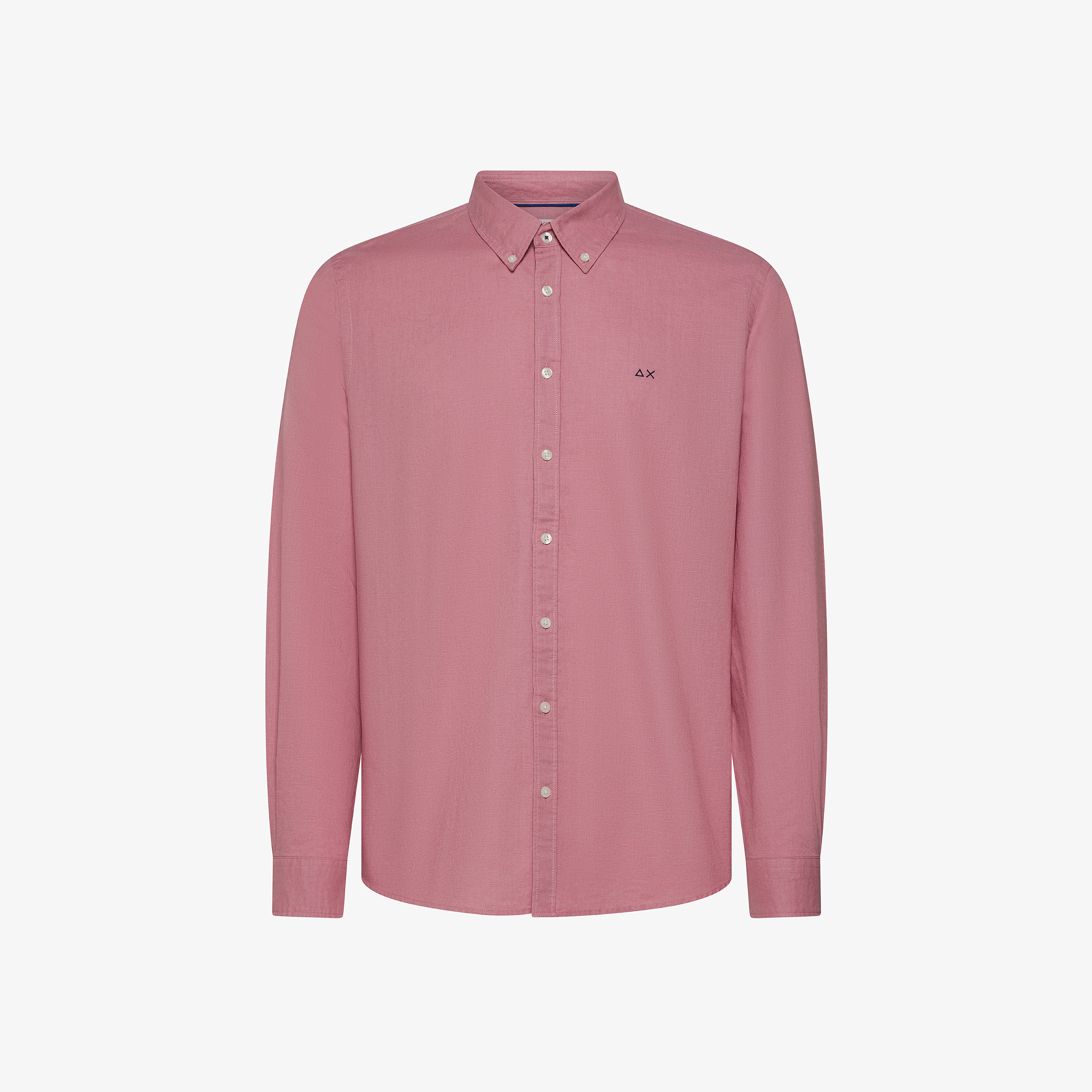 Camicia button-down in lino e cotone rosa scuro