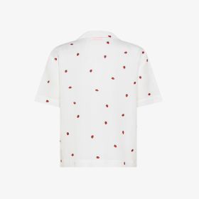 Camicia in misto cotone con ricami bianco panna/rosso