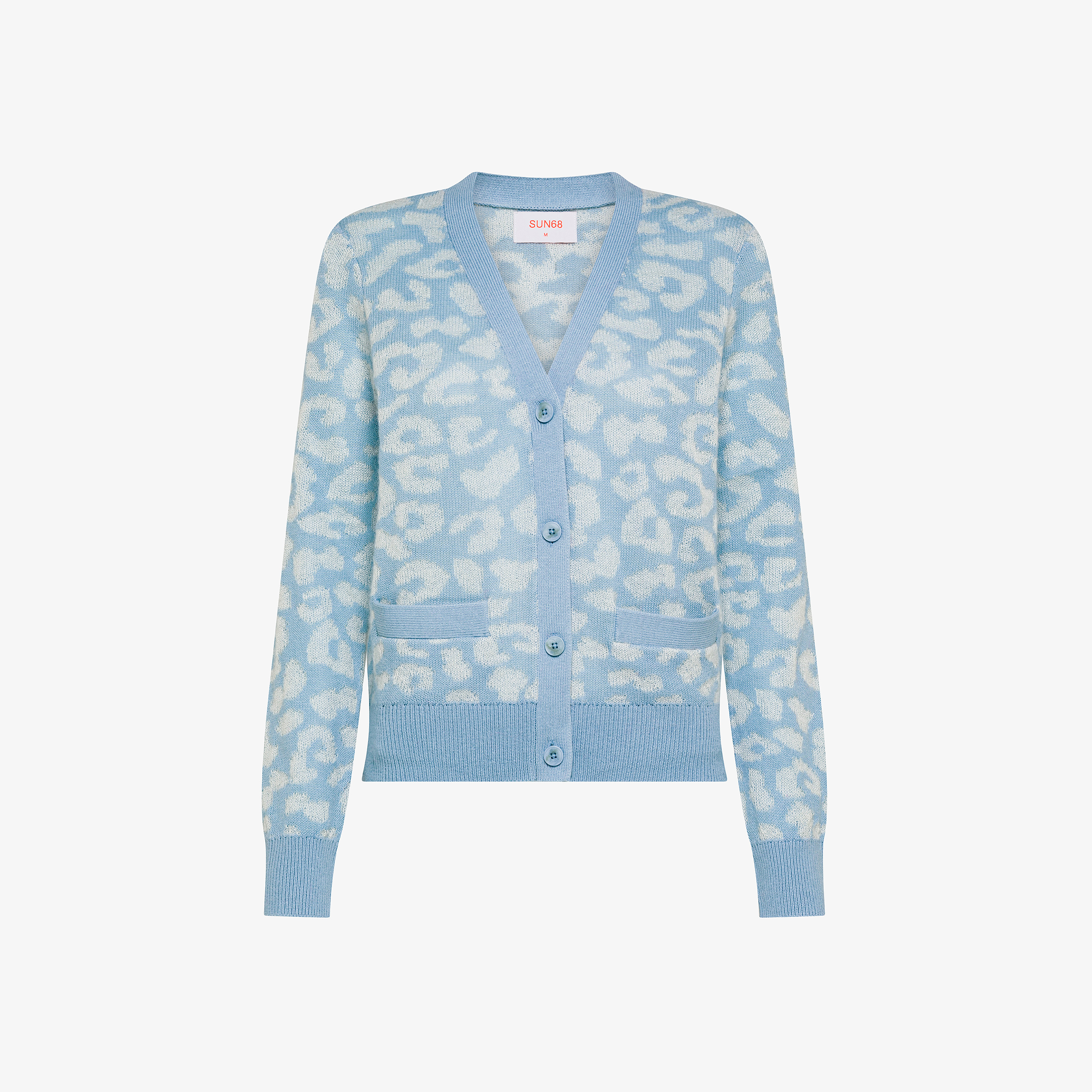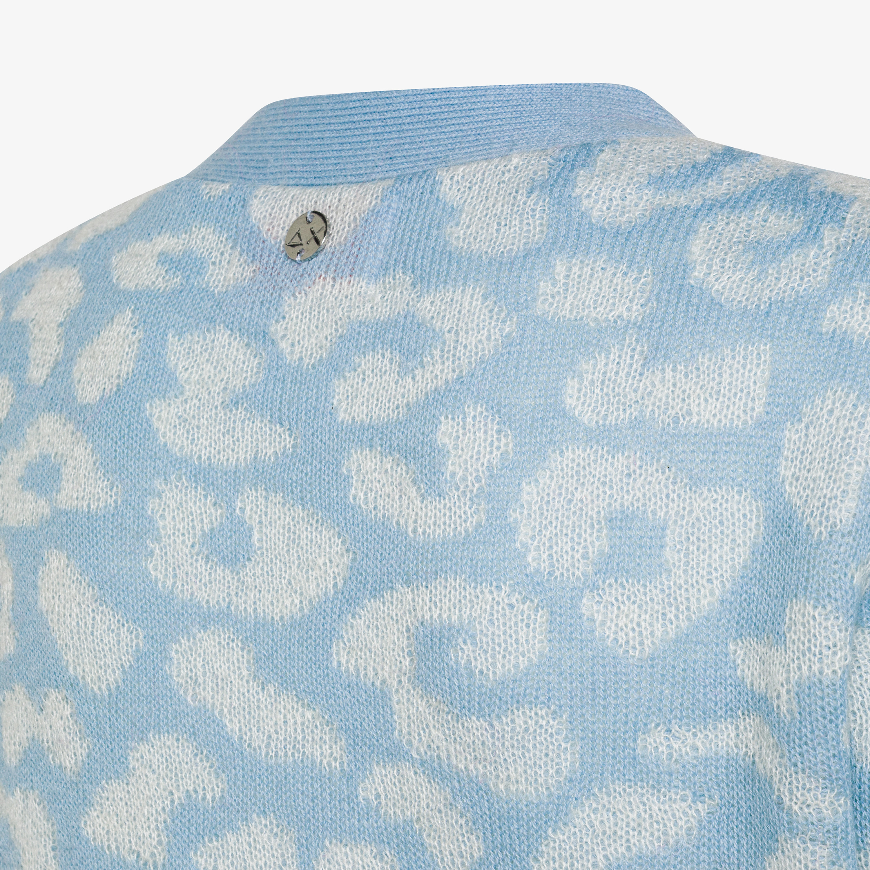 Cardigan animalier in lana e cotone azzurro chiaro bice