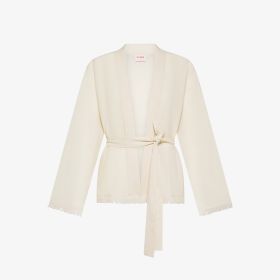 Cardigan in lana e cashmere con frange bianco panna