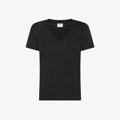 T-shirt con scollo a V in cotone nero
