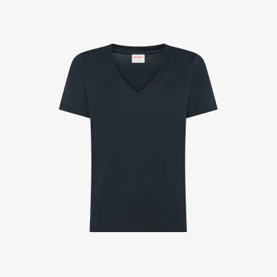 T-shirt con scollo a V in cotone blu navy