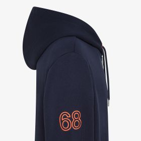 Felpa in cotone con cappuccio e logo fluo navy blue