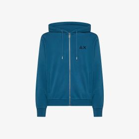 Felpa in cotone con zip e cappuccio avio scuro
