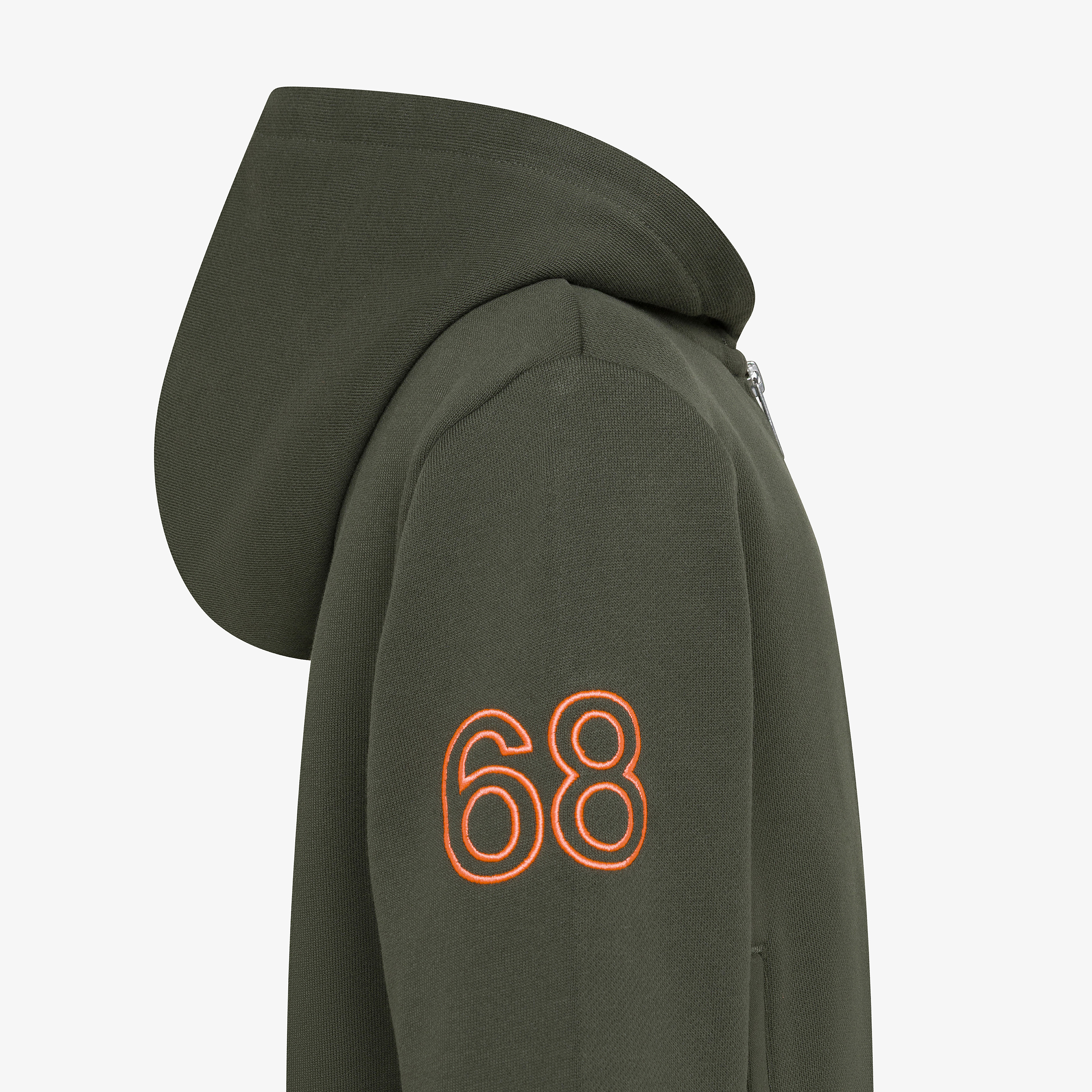 Felpa in cotone con zip e logo fluo militare scuro