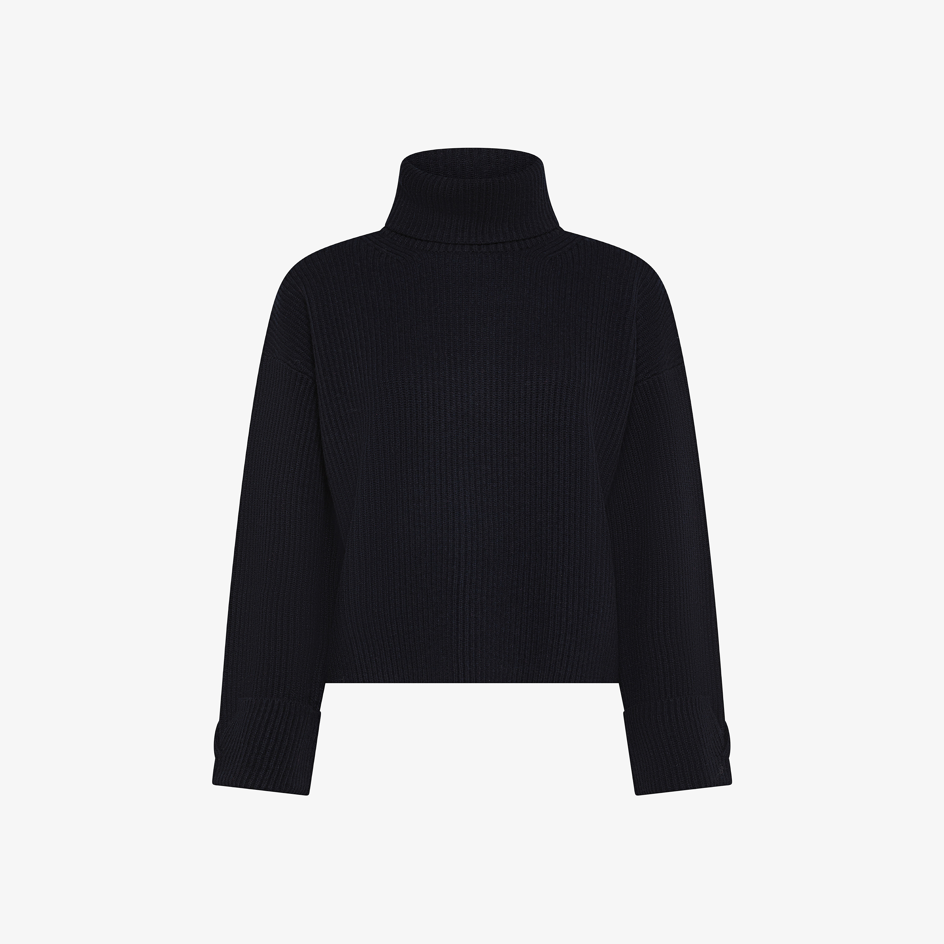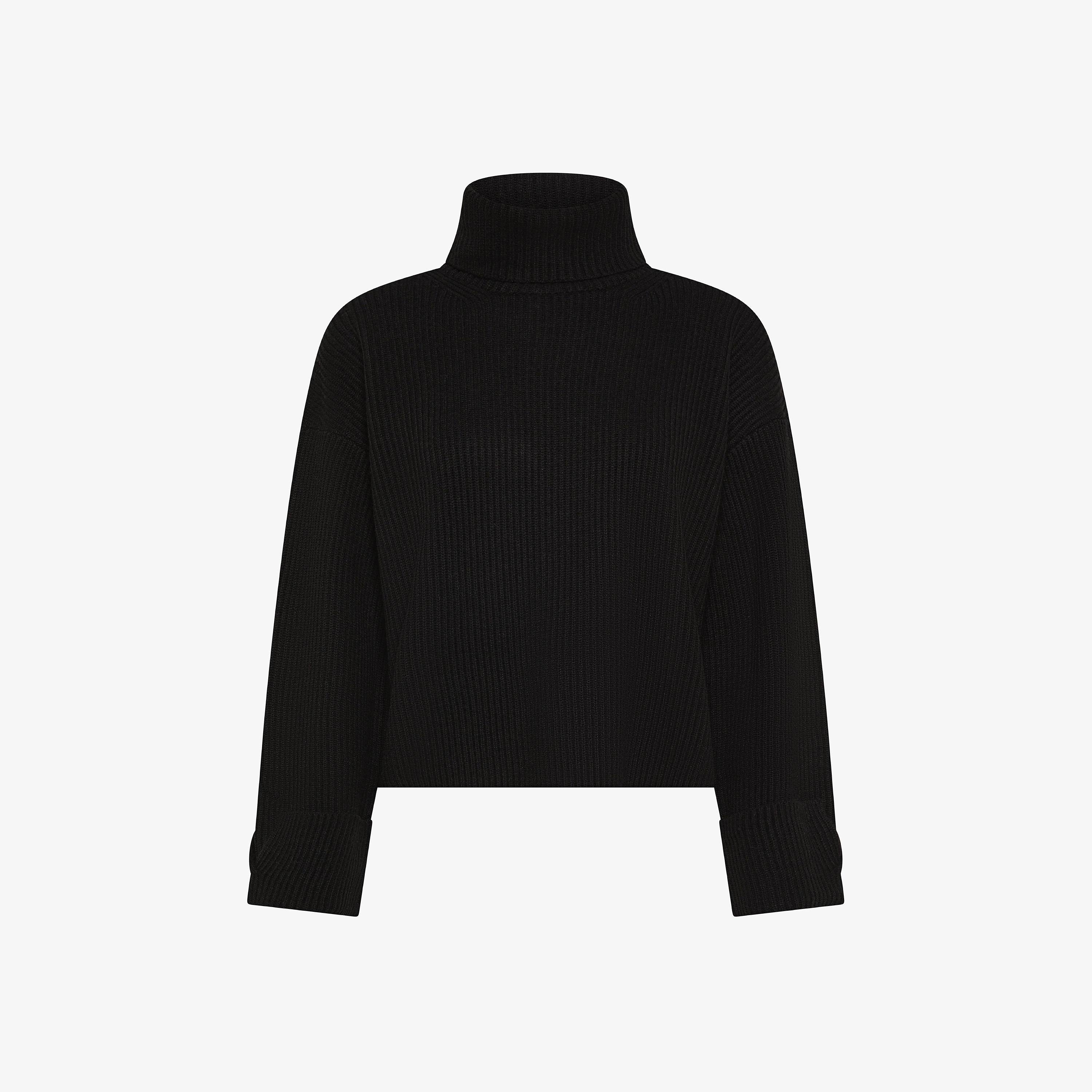 Maglione dolcevita in lana e cashmere a coste nero