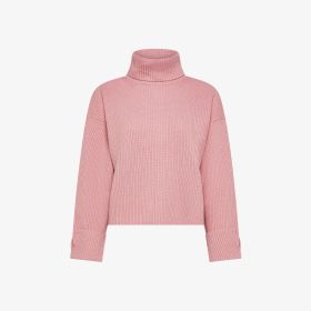 Maglione dolcevita in lana e cashmere a coste rosa scuro