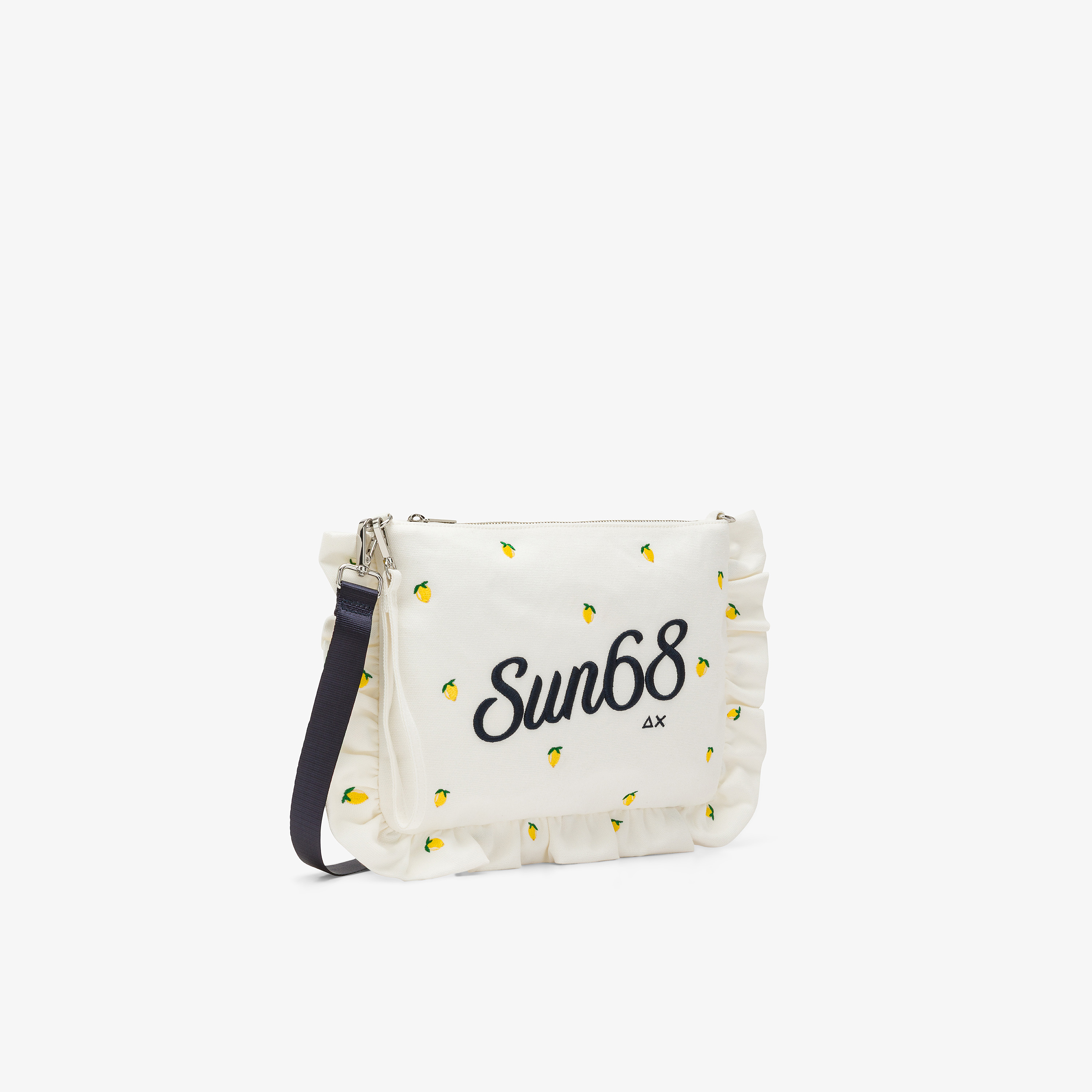 SUN68 traduce l'essenza della femminilità in accessori ricercati pensati per i momenti leisure. Questa pochette in canvas si distingue per i ricami delicati a contrasto che aggiungono una nota vivace al design, mentre i dettagli funzionali rifiniscono il modello con praticità. Perfetta per elevare il guardaroba quotidiano, può essere indossata con la camicia e i bermuda coordinati della collezione per un total look estivo dall'attitudine giocosa.