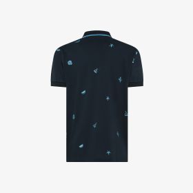 Polo in piquet di cotone con ricami blu navy