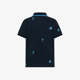 Polo in piquet di cotone con ricami blu navy