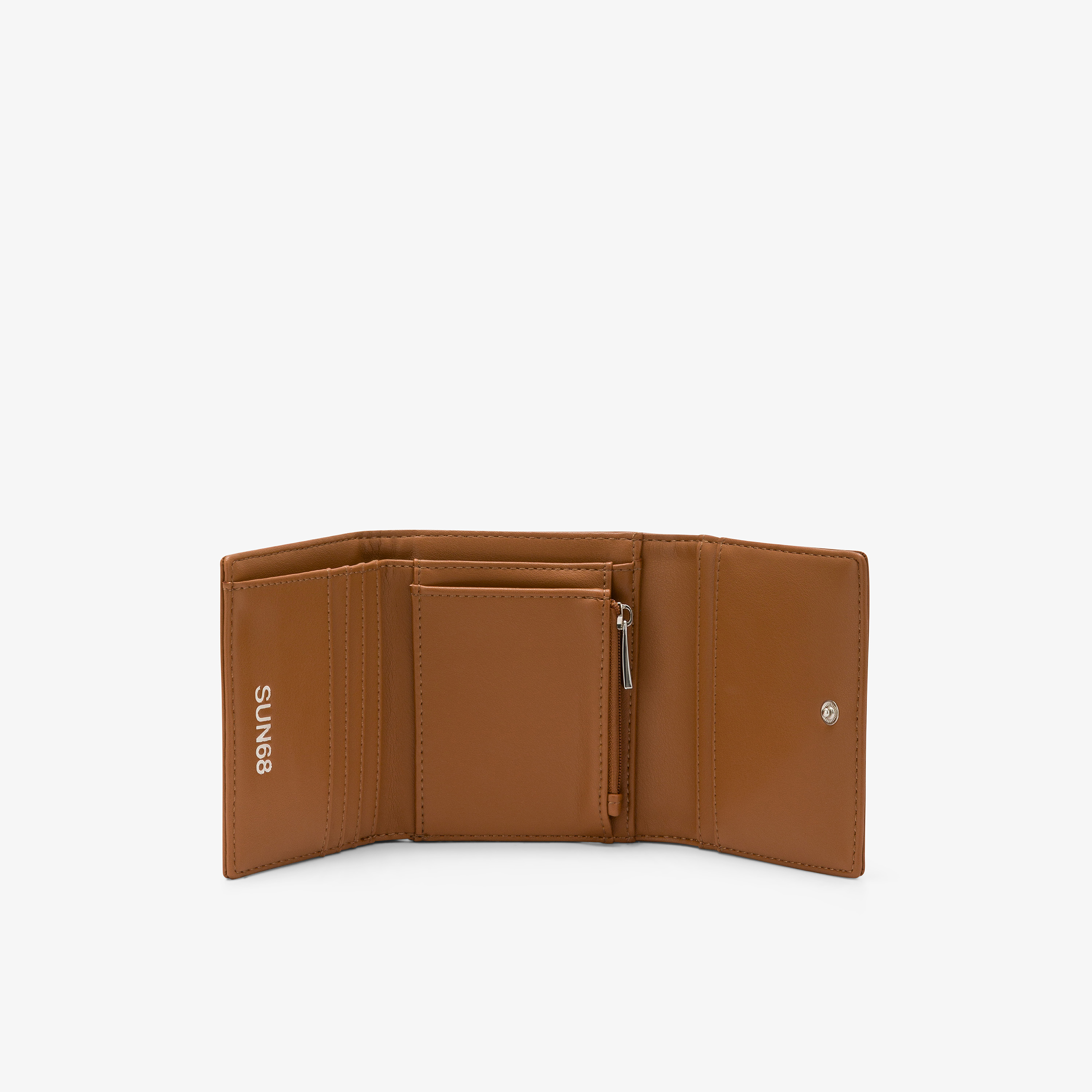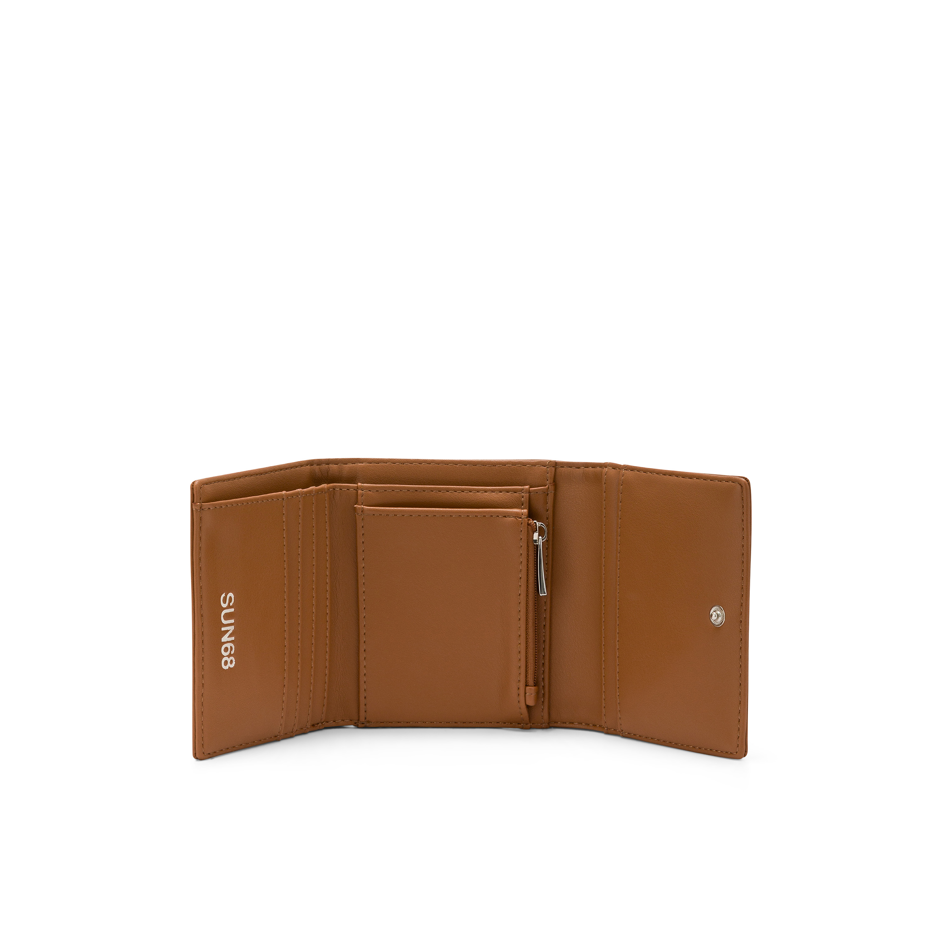 Il portafogli SUN68 è l'essenziale immancabile che aggiunge un accento ricercato allo stile di ogni giorno. Il modello si distingue per il logo a contrasto e un'organizzazione interna funzionale, studiata per tenere ogni cosa al suo posto. Un accessorio versatile che si abbina alle borse della collezione, per un look curato in ogni dettaglio e dal fascino ricercato.