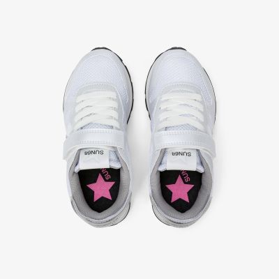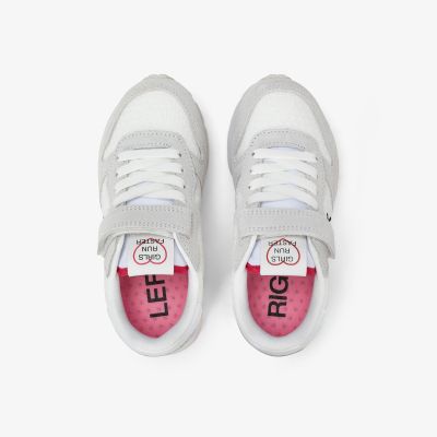 Sneaker Girl's Ally Solid in suede e nylon bianco/fucsia fluo